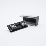 2:04 nél látható a tűs kommunikációs csatlakozó. A szerelő felületek alkalmazásával bármilyen méretű AX sorozatú doboz csatlakoztatható egymással.